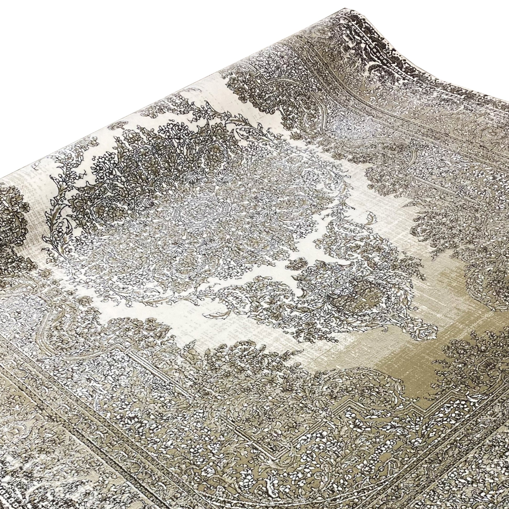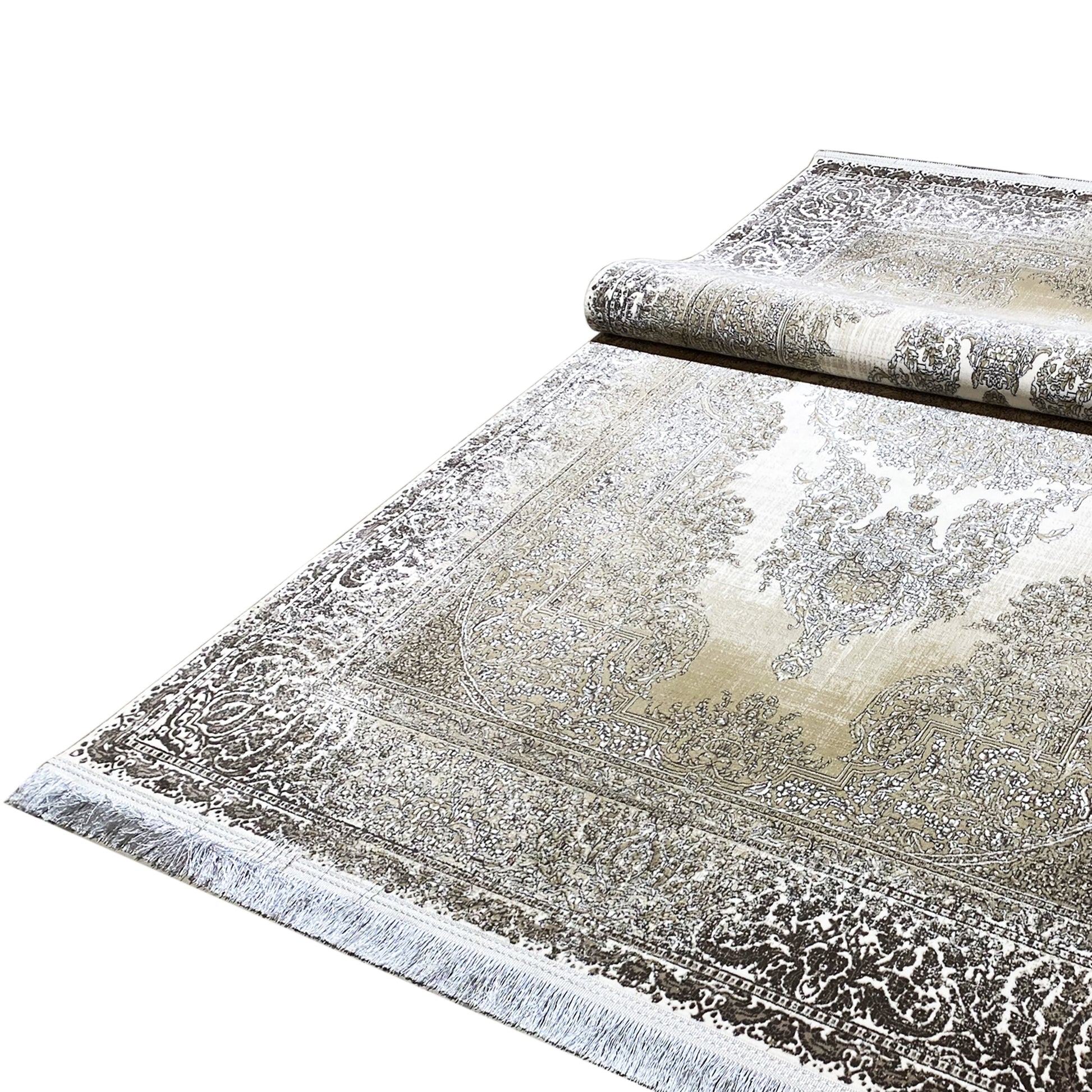 Apportez une touche d'élégance intemporelle à votre intérieur avec ce tapis classique. Le motif persan traditionnel, avec un médaillon central artistique et une bordure ornée, crée un point focal luxueux. Avec ses dimensions de 170x240cm, il est parfait pour sublimer un salon ou une chambre. Fabriqué en acrylique durable et facile d'entretien, ce tapis crème-argenté allie esthétique et fonctionnalité, s'intégrant parfaitement aux styles d'ameublement traditionnels ou modernes.