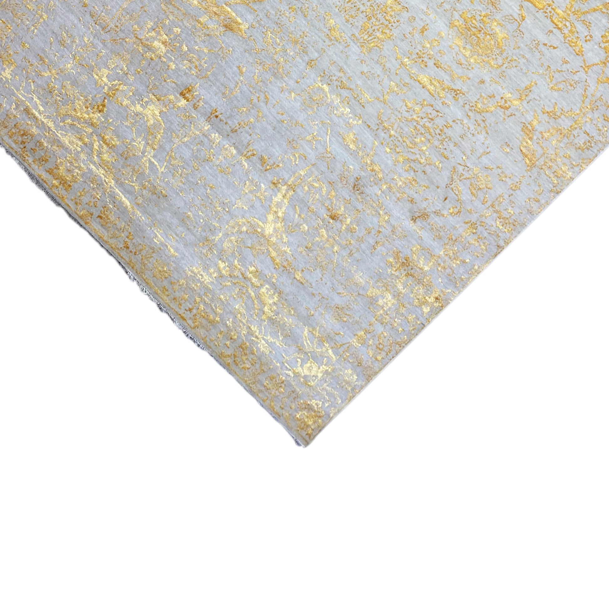 Embellissez votre maison avec ce tapis de designer exquis, tissé à la main. Le motif fascinant en gris et or offre un style de décoration moderne et opulent, apportant une touche de luxe à chaque pièce. Fabriqué en laine de haute qualité et en viscose brillante, ce tapis élégant (316x245 cm) offre non seulement un attrait visuel, mais aussi une agréable sensation au toucher et une grande durabilité pour votre intérieur.