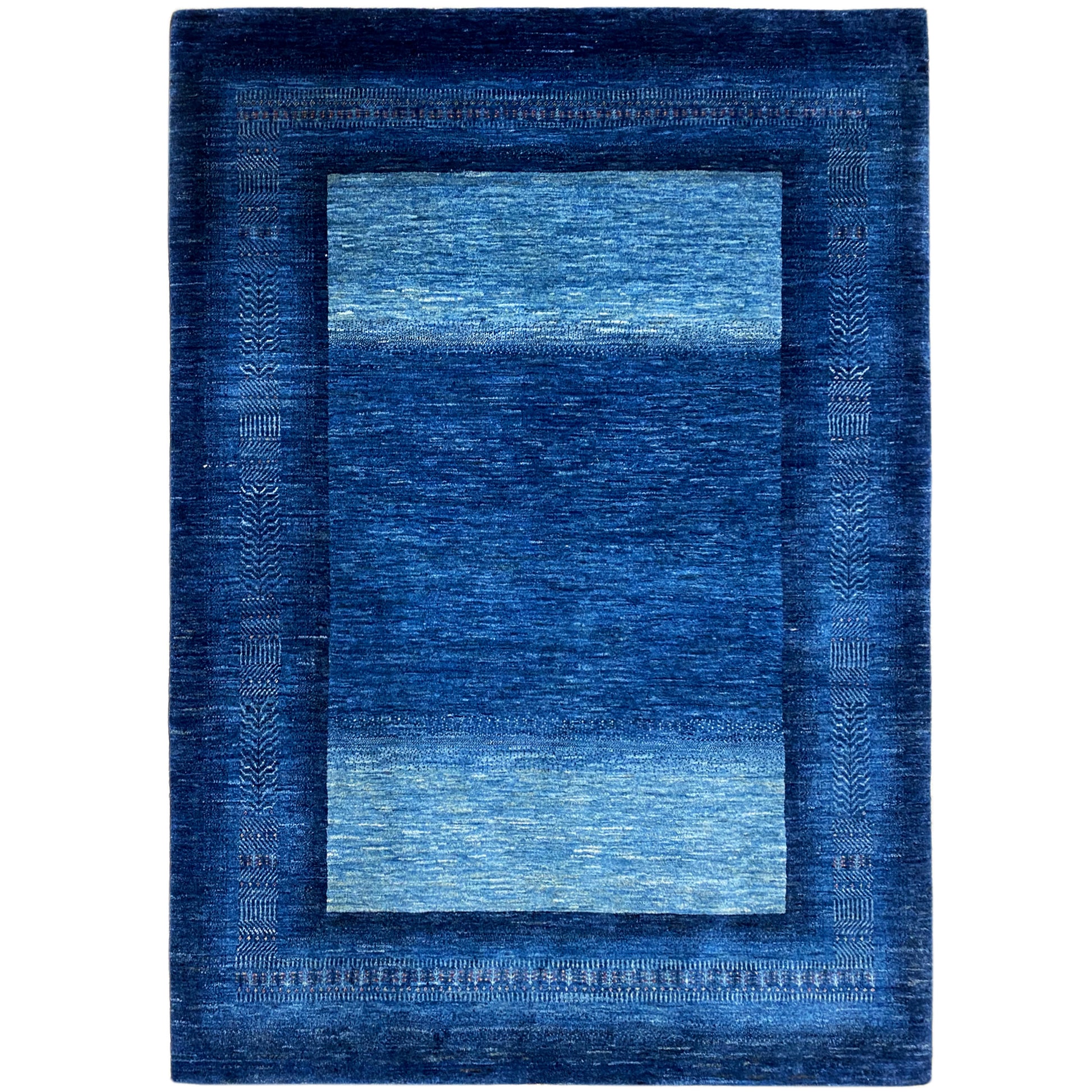 Ce tapis Luri Gabbeh impressionnant, noué à la main à partir de laine filée à la main et teinte avec des plantes, se présente dans des tons de bleu fascinants avec un motif rectangulaire distinctif et des rayures subtiles, offrant une esthétique apaisante. Avec ses dimensions de 214x164cm, il constitue un excellent complément à divers styles d'aménagement, allant du moderne frais à un look décontracté de maison de plage. Le savoir-faire exceptionnel et les matériaux naturels garantissent non seulement une durabilité exceptionnelle, mais aussi une œuvre d'art unique qui apporte confort et style à votre intérieur.