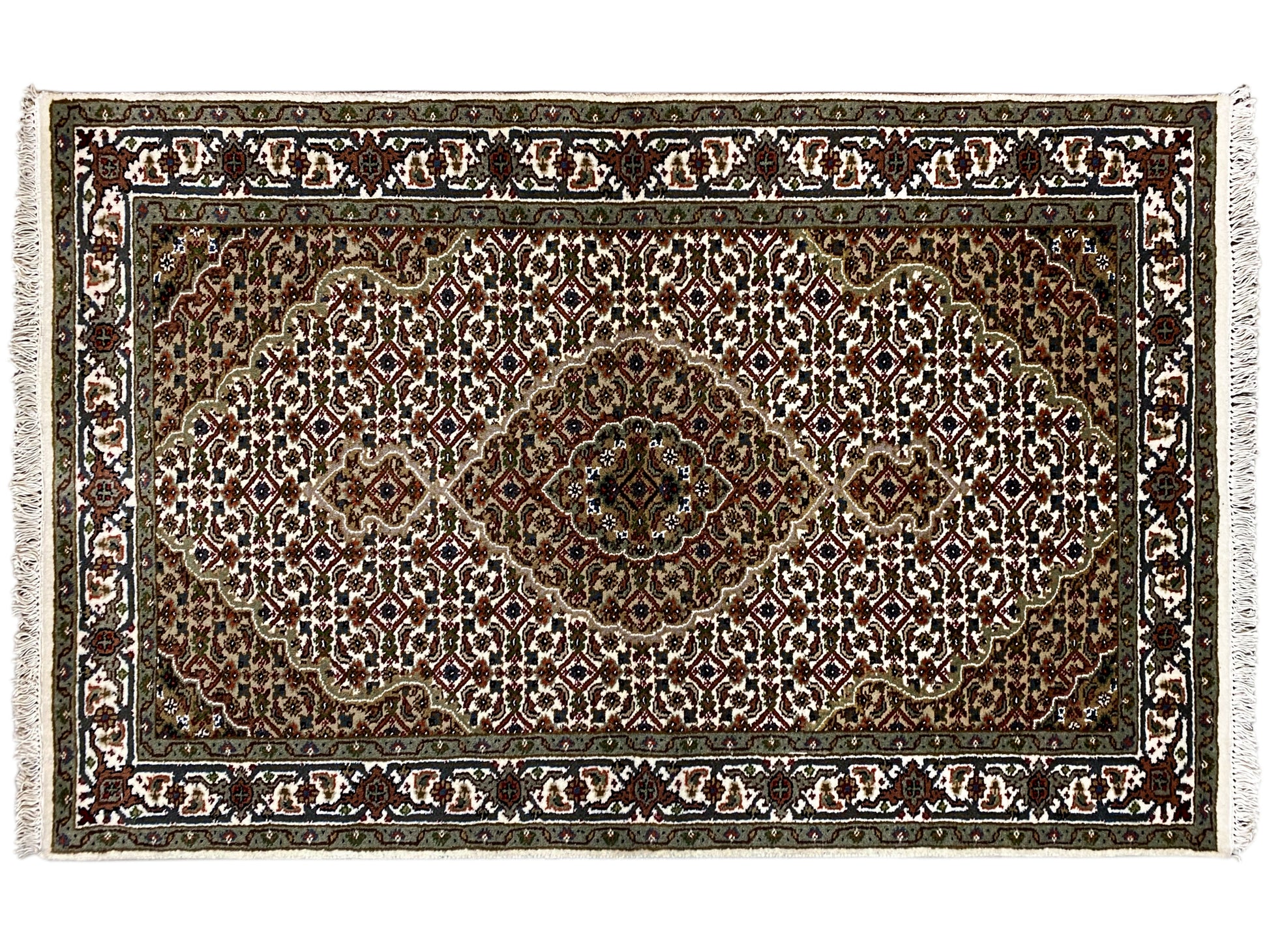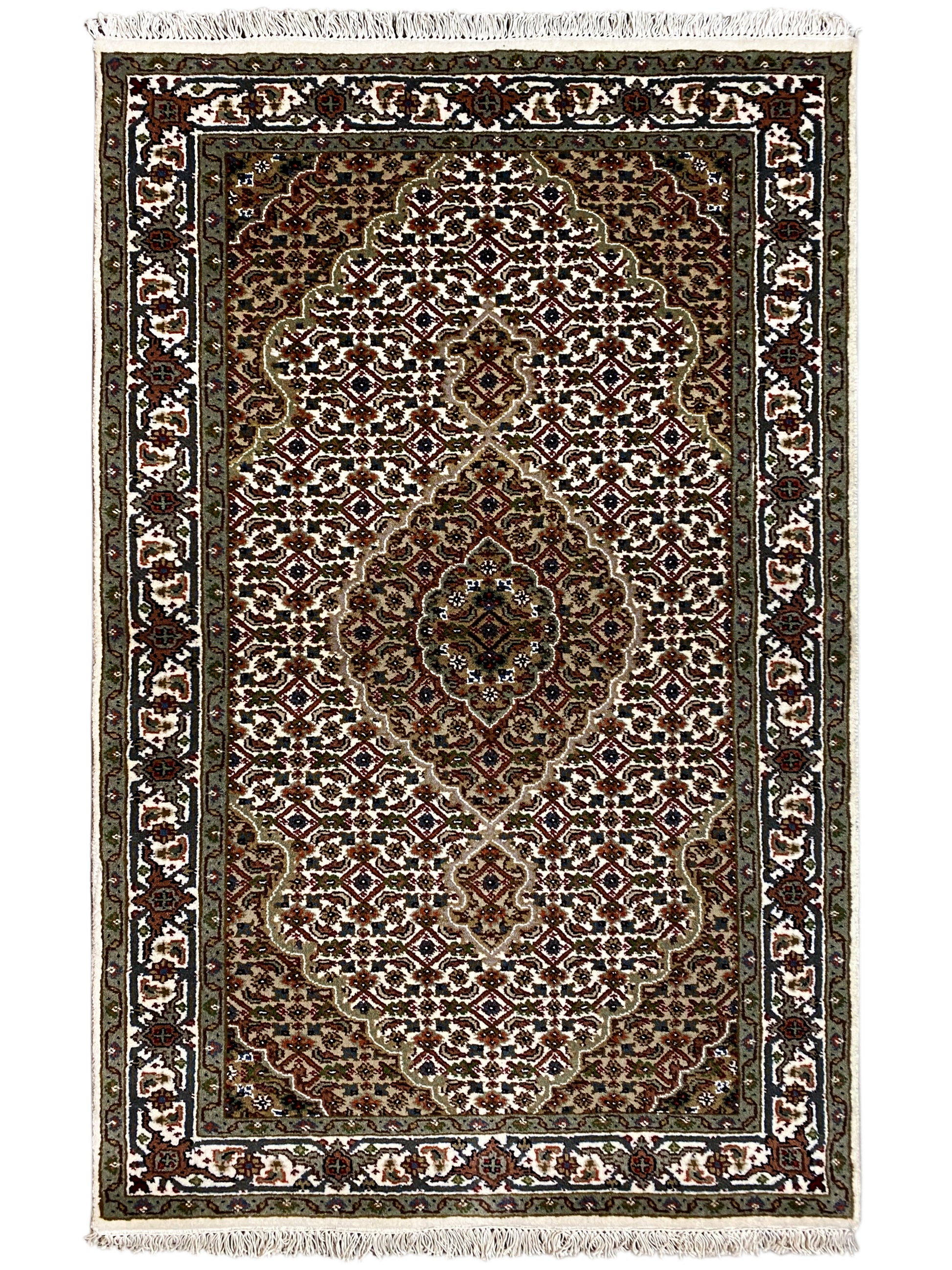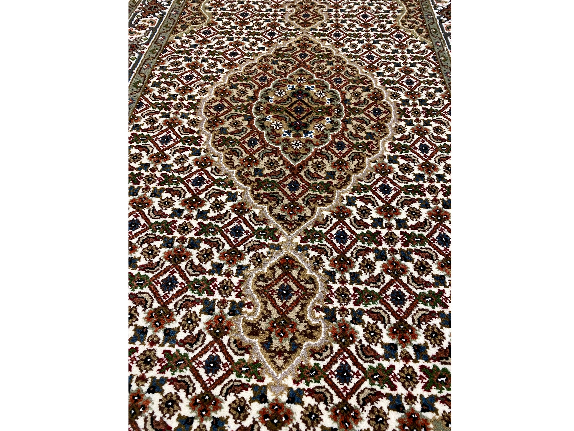 À l'origine, les tapis Tabriz proviennent du nord-ouest de la Perse. Aujourd'hui, ces tapis sont également noués à la main en Inde selon les mêmes normes de qualité. Nos Tabriz sont des tapis de haute qualité et élégants, tissés en laine fine et viscose. Les tapis ont des couleurs vives, claires et profondes et sont très résistants grâce à leur bonne fabrication.