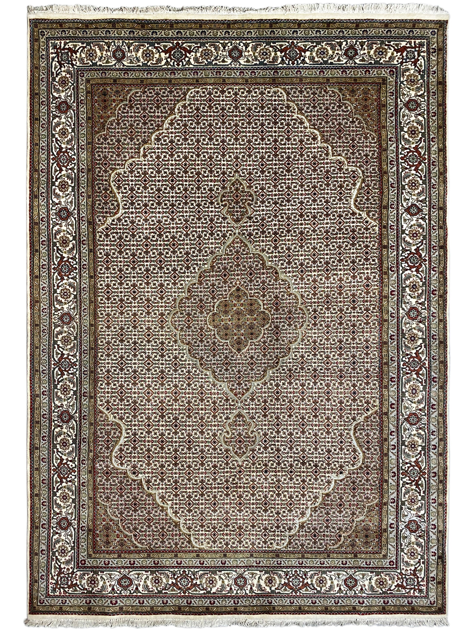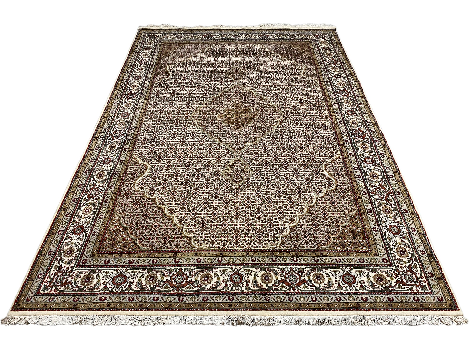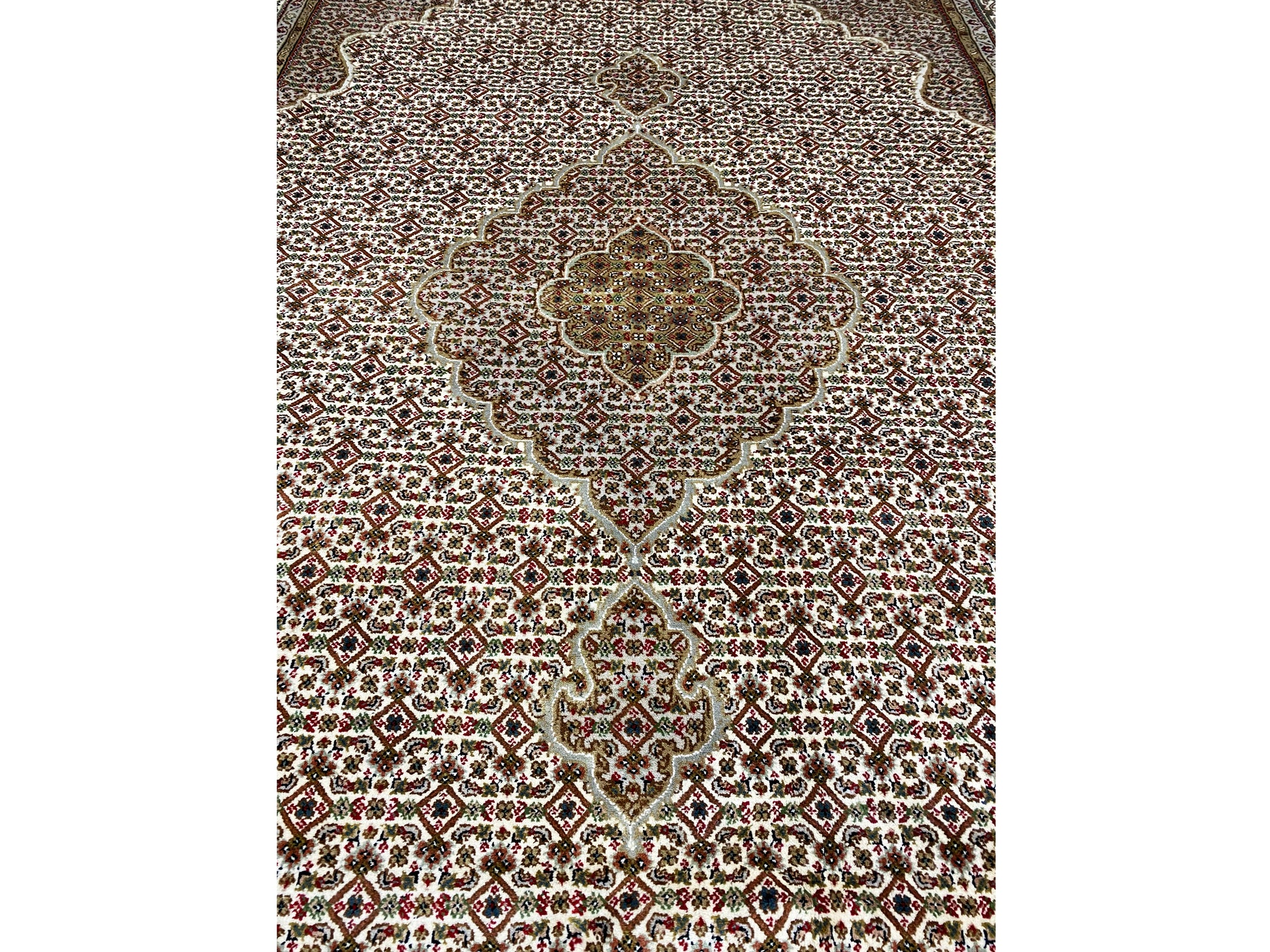 À l'origine, le Tabriz Mahi vient de Perse. Cependant, ces tapis sont désormais également noués à la main en Inde selon les mêmes standards de qualité. Nos Mahi sont des tapis haut de gamme et élégants, noués avec de la laine fine. Les tapis ont des couleurs vives, claires et profondes et sont très résistants grâce à leur bonne fabrication.