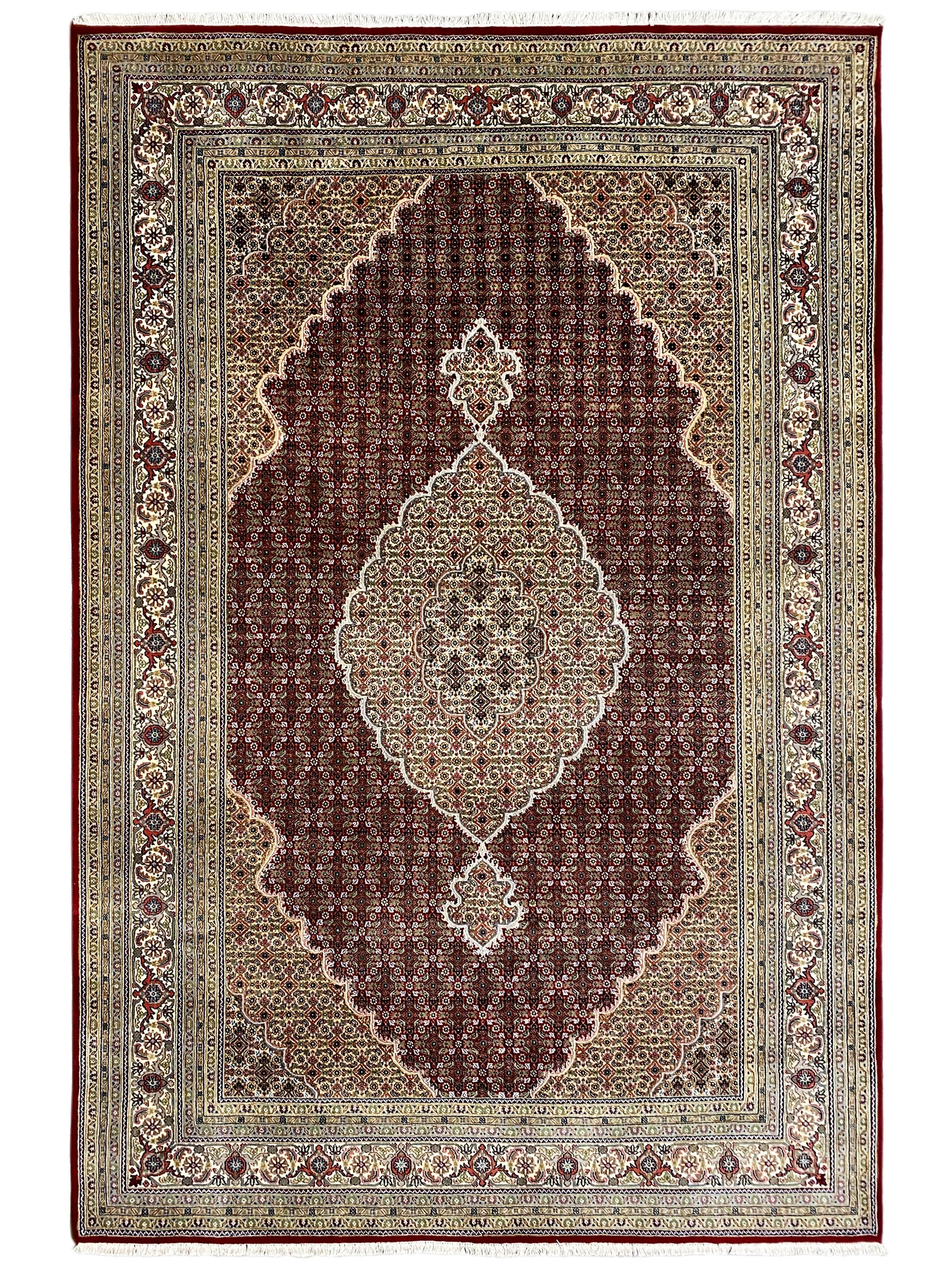 À l'origine, le Tabriz Mahi vient de Perse. Cependant, ces tapis sont désormais également noués à la main en Inde selon les mêmes standards de qualité. Nos Mahi sont des tapis haut de gamme et élégants, noués avec de la laine fine. Les tapis ont des couleurs vives, claires et profondes et sont très résistants grâce à leur bonne fabrication.