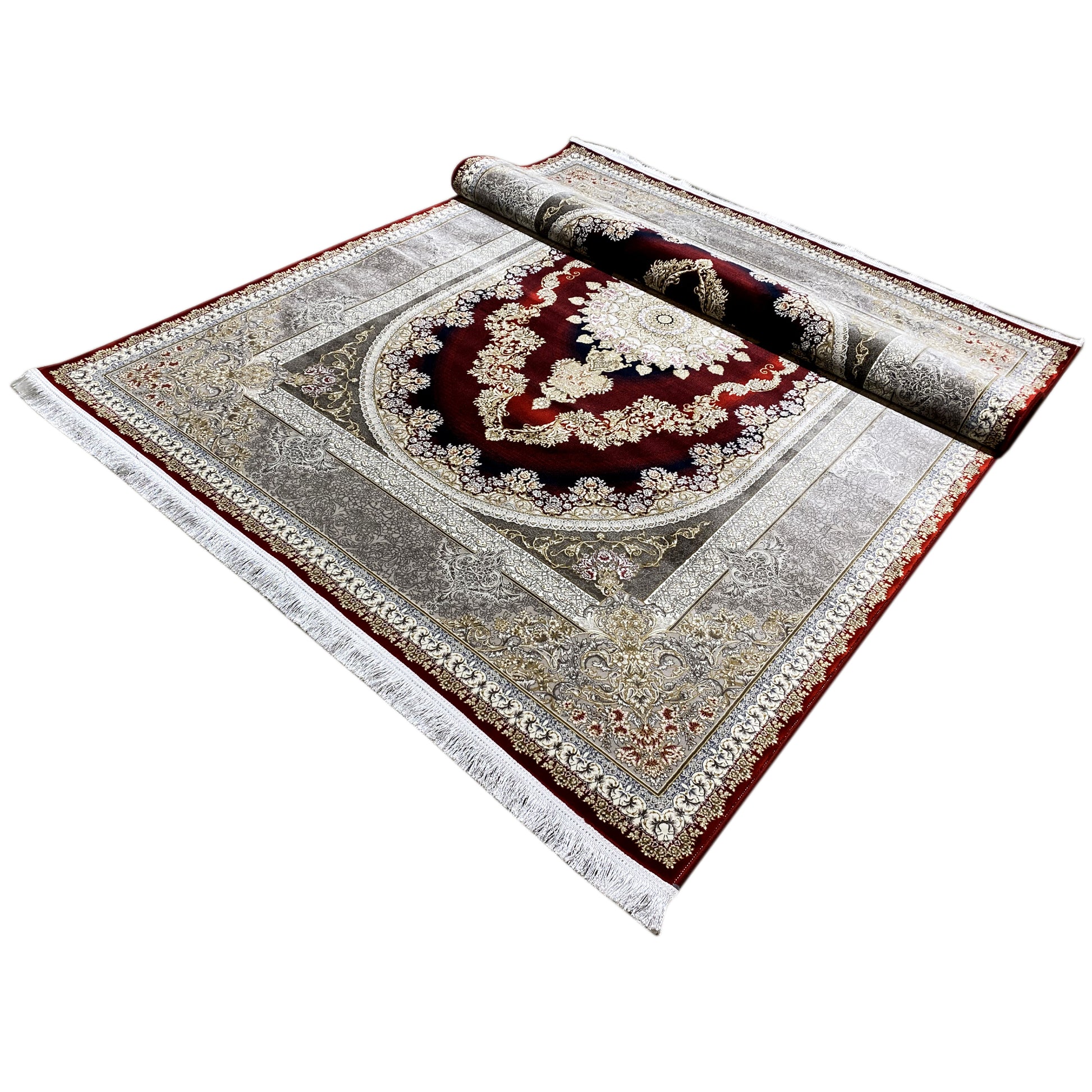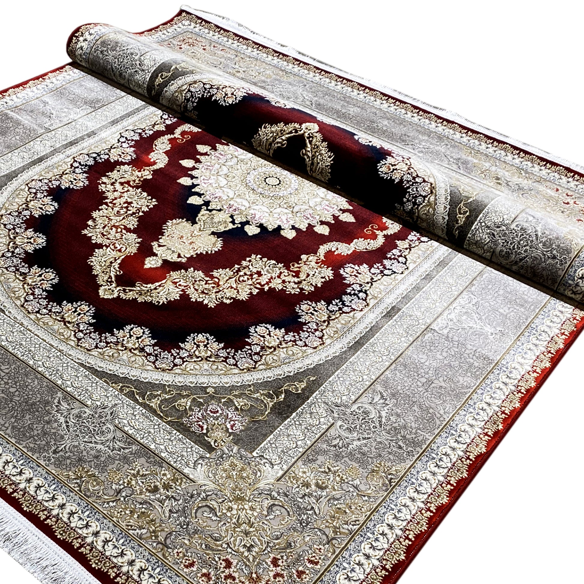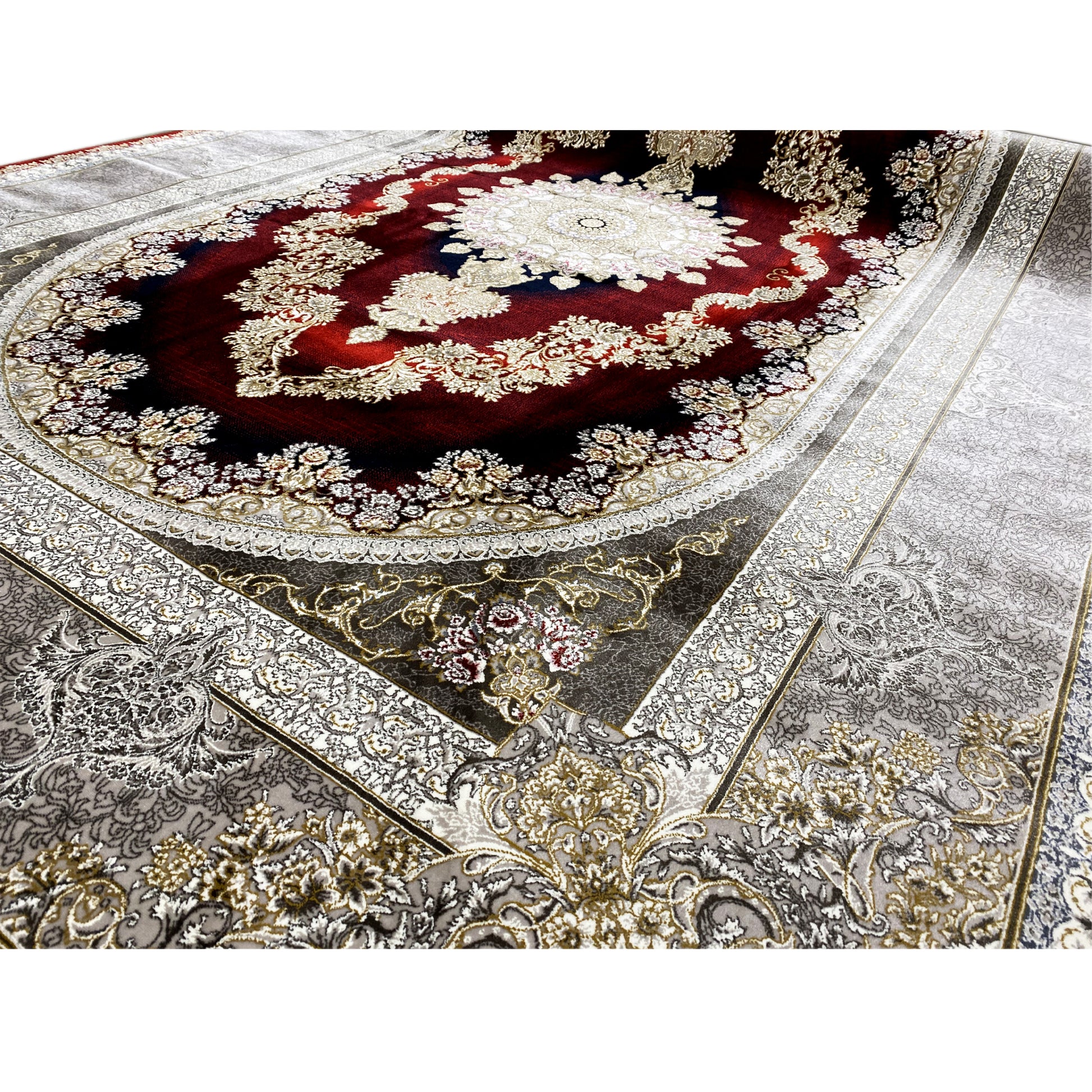 Apportez une élégance opulente à votre intérieur avec ce magnifique tapis classique. Son design distinctif en médaillon ovale présente un motif artistique dans des tons profonds de rouge et d'or, encadré par une bordure argentée raffinée. Fabriqué à 100 % en acrylique traité thermiquement, ce tapis doux et résistant est idéal pour les zones à fort passage, alliant un style luxueux à une durabilité moderne. Sa taille généreuse de 170x240 cm en fait la pièce maîtresse parfaite pour votre salon ou salle à manger.
